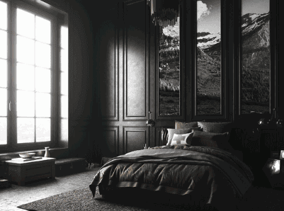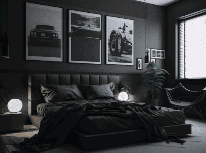 Combining sleek, contemporary pieces with timeless furniture pieces like a black canopy bed or a sleek dresser can elevate the overall ambiance of the room, making it a luxurious retreat for relaxation and rejuvenation.
